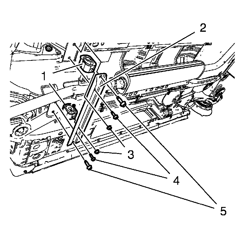 4. Remove the exhaust pipe front hanger bracket (2).