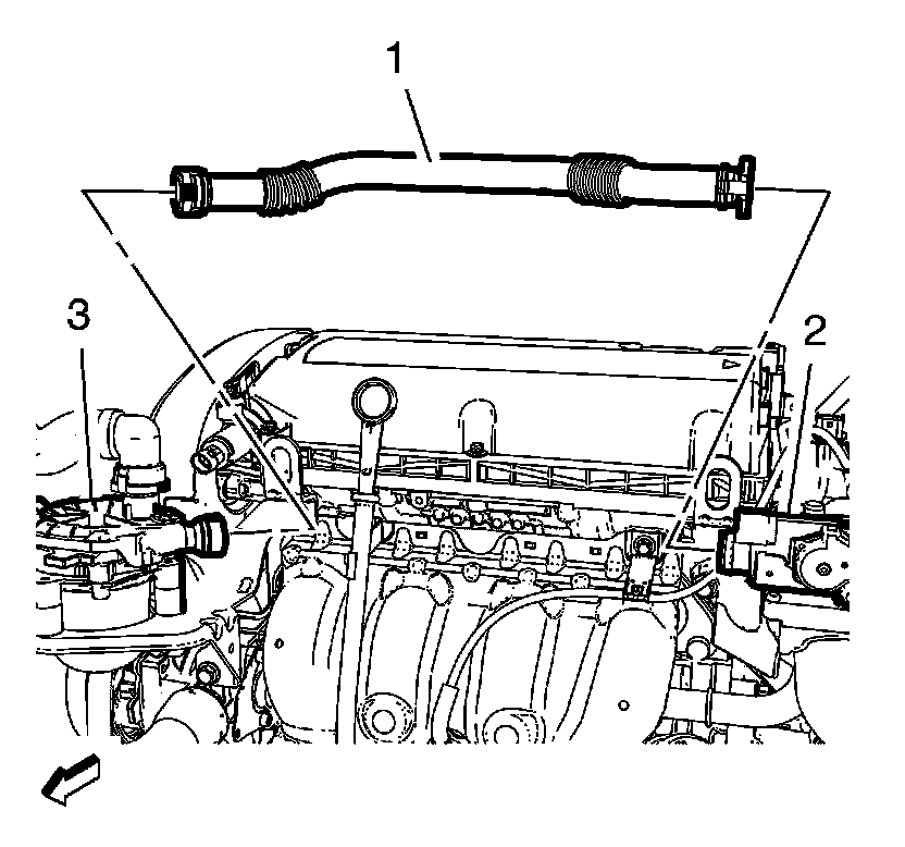 4. Connect the secondary air injection pump pipe (1) to the secondary air injection check valve (2). Refer to Plastic Collar Quick Connect Fitting Service Service and Repair.