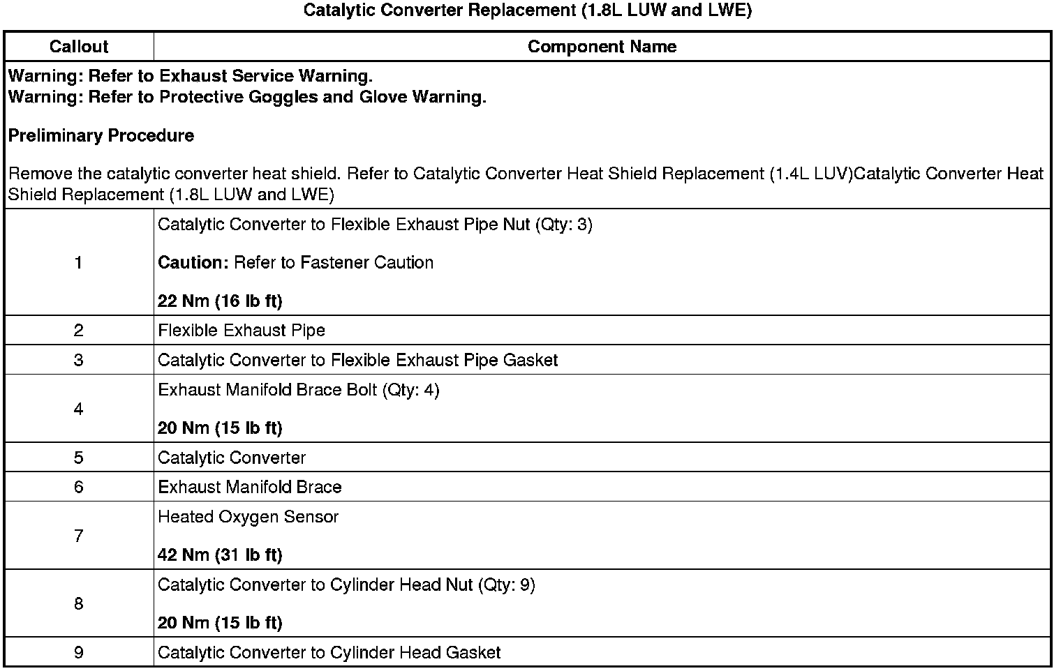 Replacement (1.8L LUW and LWE)