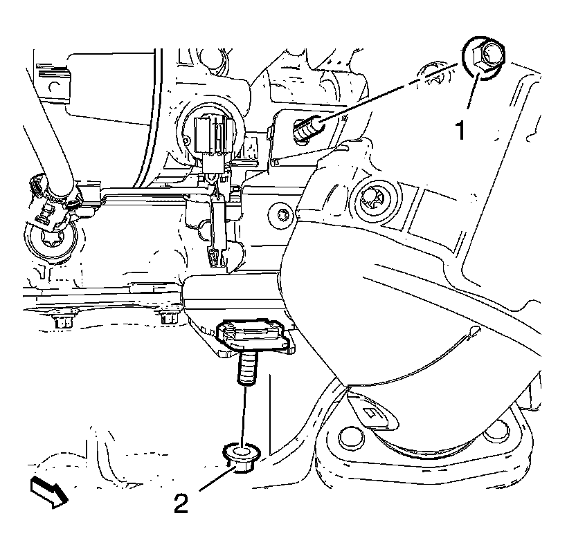4. Install and hand-tighten the 2 three way warm up catalytic converter bracket nuts (1) and (2).