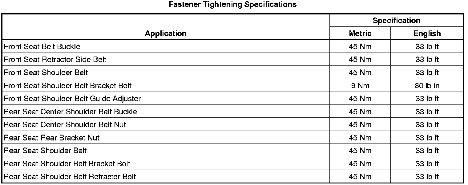 Fastener Tightening Specifications