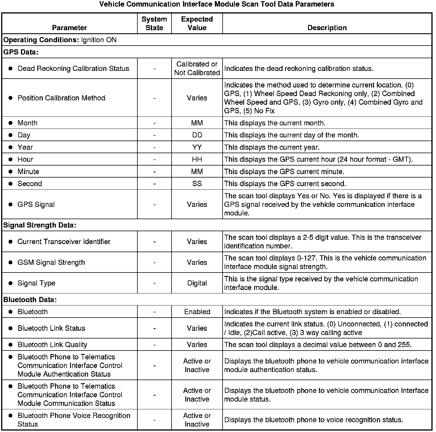 Communication Interface Module Scan Tool Information