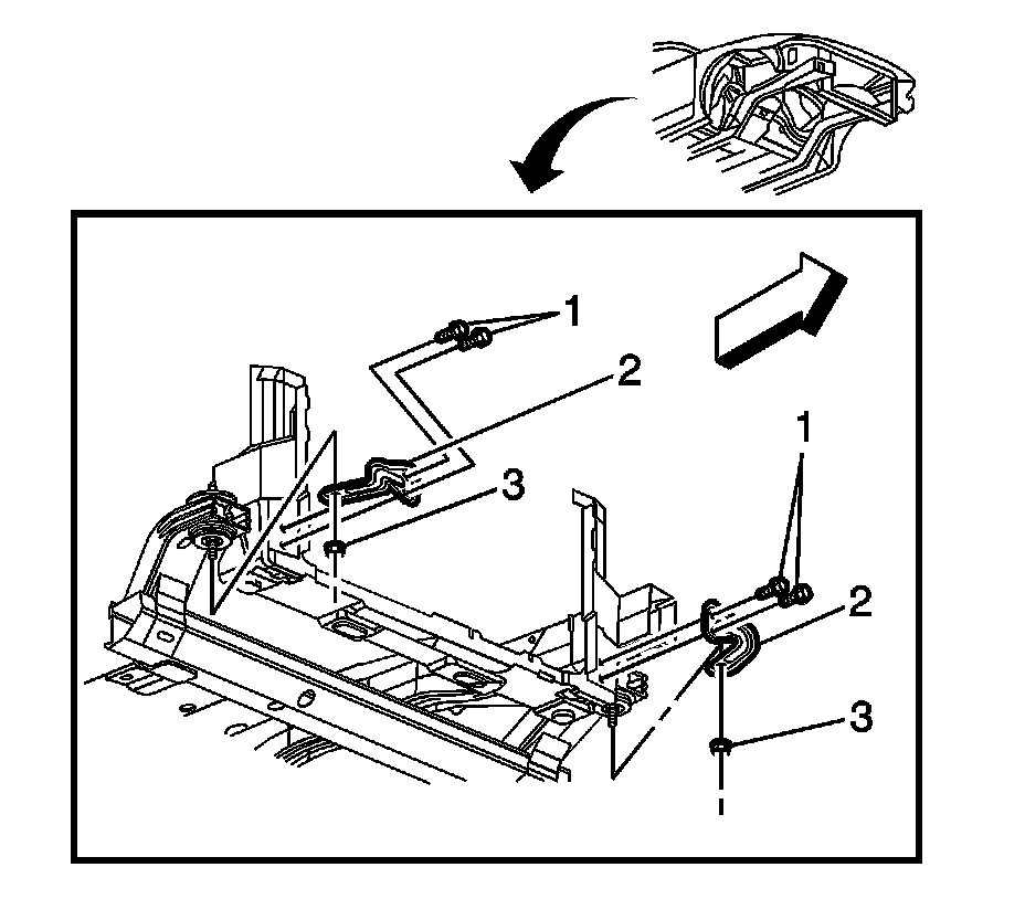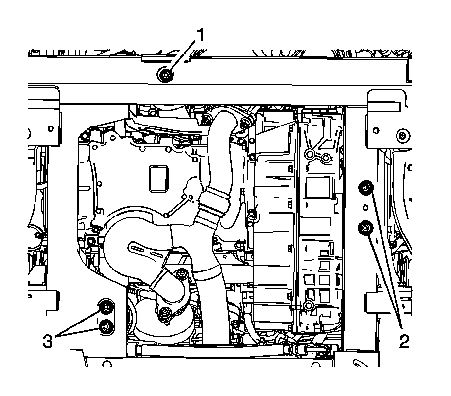 11.Remove the rear engine mount to frame fasteners (3) to 52 N �m (38 lb ft).