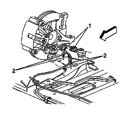12.Loosen the transmission mount fasteners (2) to 52 N �m (38 lb ft).