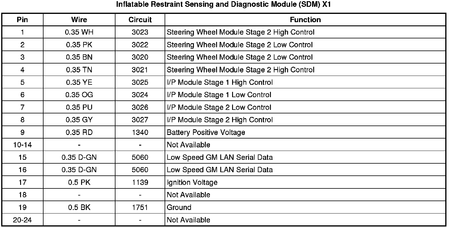 Inflatable Restraint Sensing and Diagnostic Module (SDM) X1