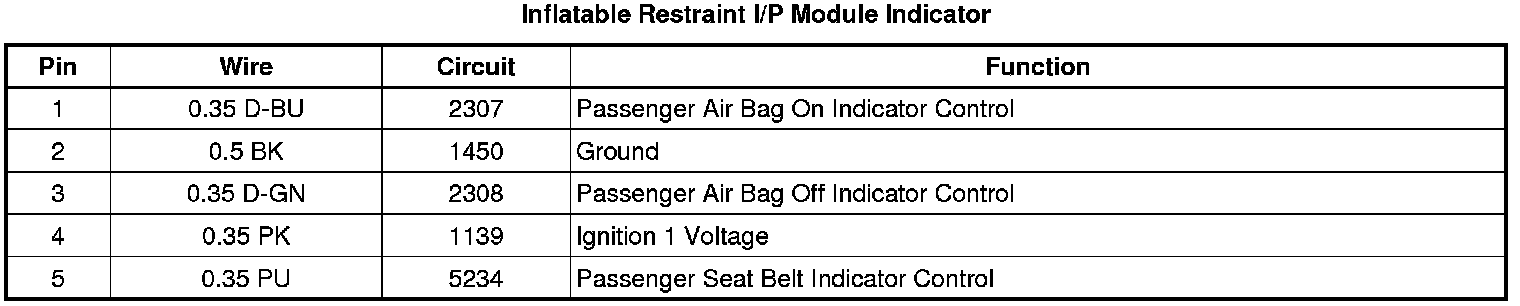 Inflatable Restraint I/P Module Indicator