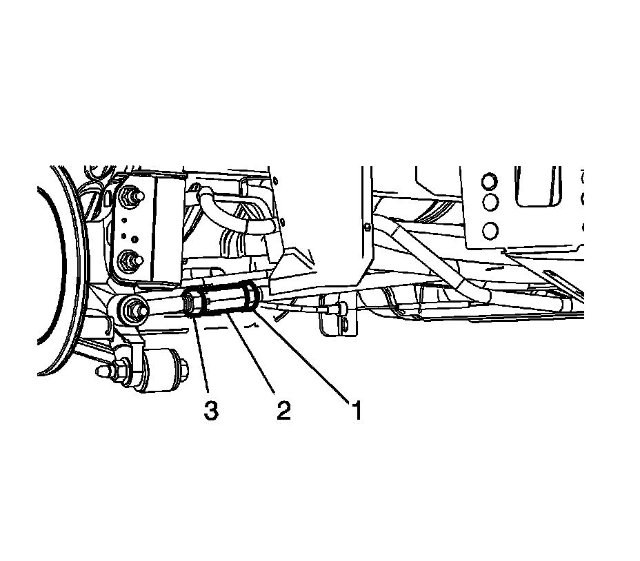 3. Using a backup wrench to hold the rear suspension adjust link (2), tighten the rear suspension adjust link nuts (1) and (3) to 75 Nm (55 lb ft).