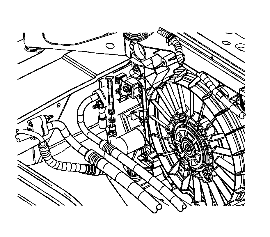 3. Remove the A/C line coupling from the evaporator tube to condenser tube. Refer to Air Conditioning Line/Tube Connector Removal/Replacement Air Conditioning Line/Tube Connector Removal/Replacement.