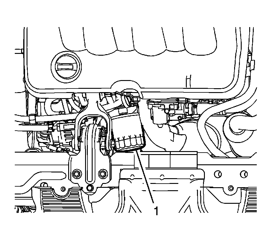 2. Remove the oil filter (1). Allow the oil to drain completely.