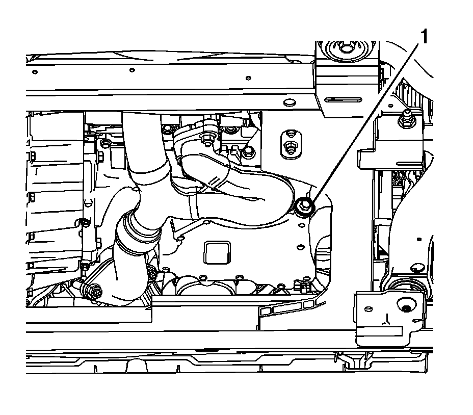 5. Remove the oil pan drain plug (1). Allow the oil to drain completely.