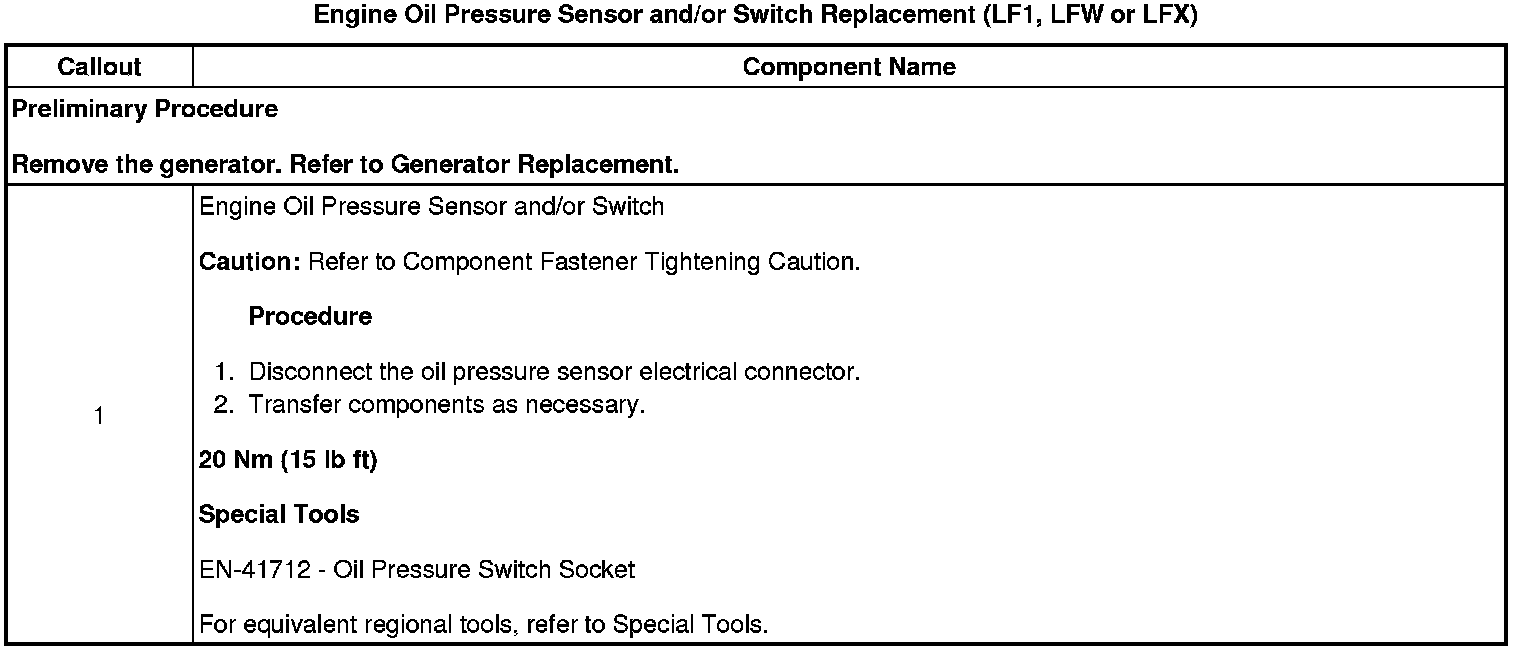 Engine Oil Pressure Sensor and/or Switch Replacement (LF1, LFW or LFX)