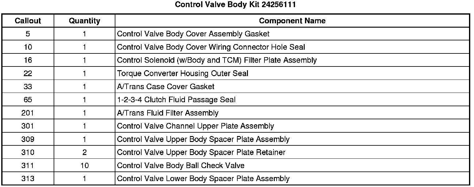 Control Valve Body Kit 24256111