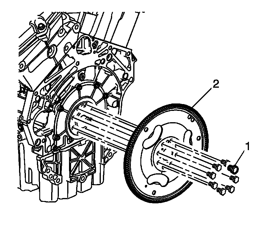 2. Install NEW flex plate bolts (1) and tighten to 30 Nm (22 lb ft) plus and additional 45 degrees.
