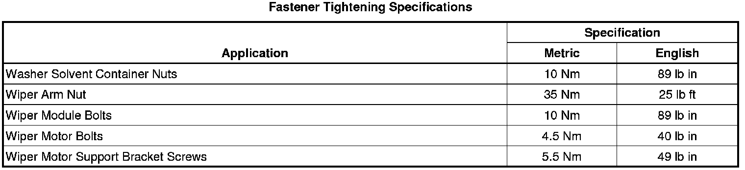 Wiper and Washer Systems: Specifications