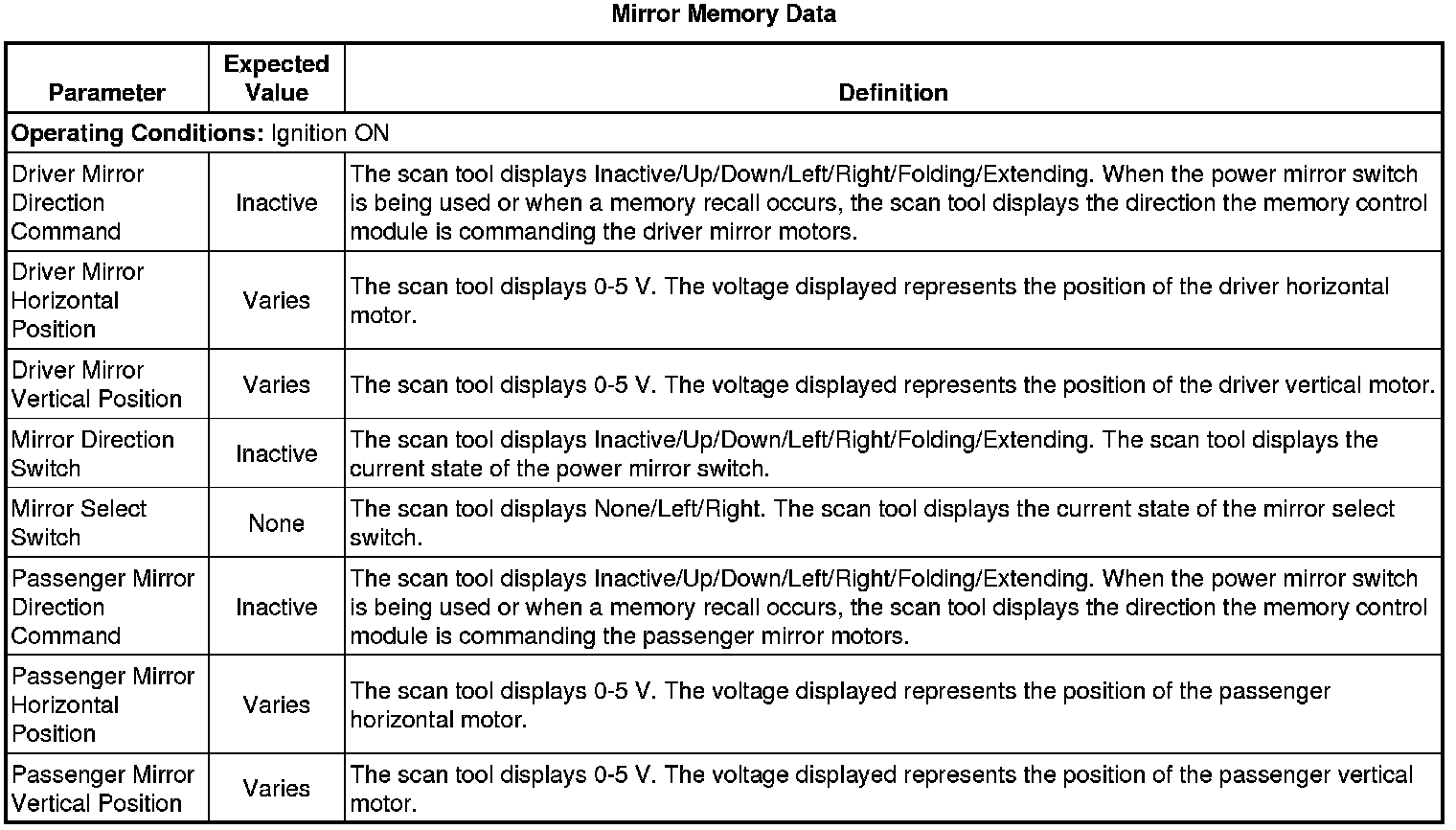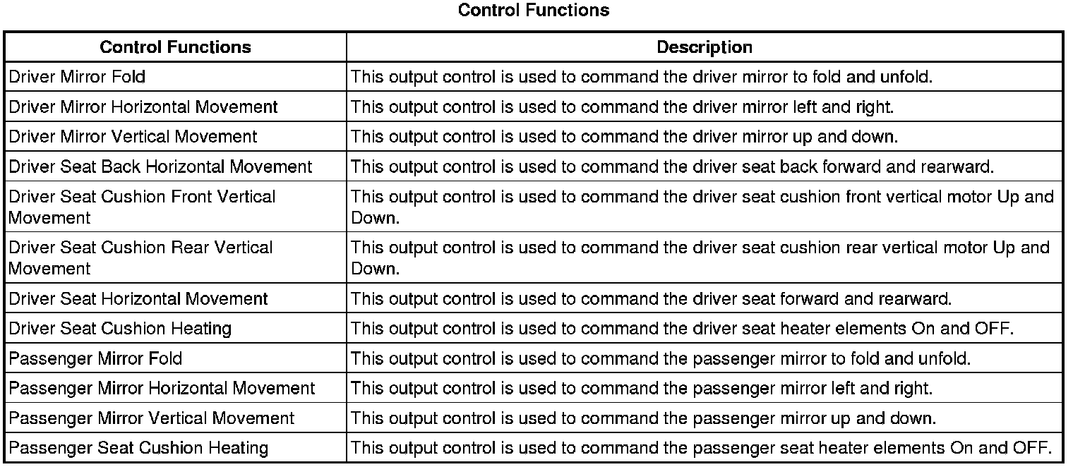 Driver Seat Adjuster Memory Module Scan Tool Information