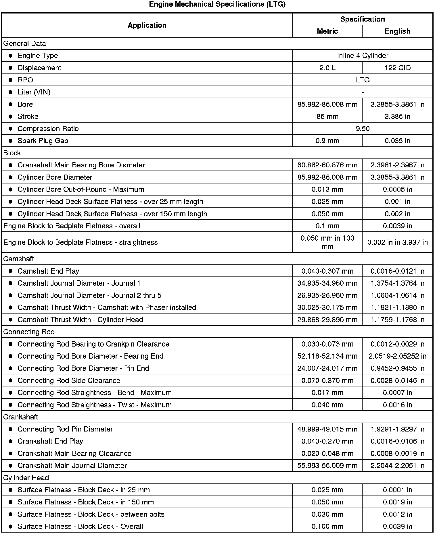Engine Mechanical Specifications (LTG)