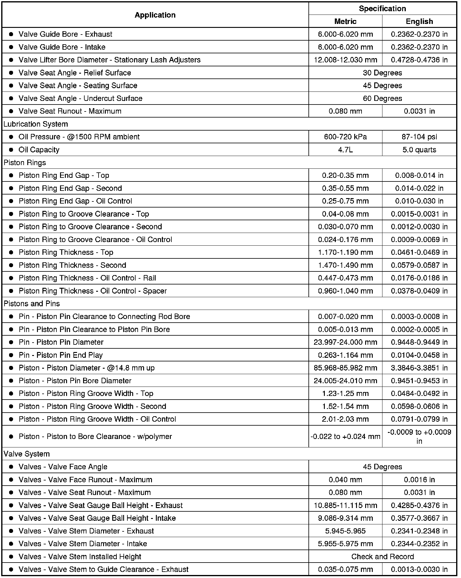 Engine Mechanical Specifications