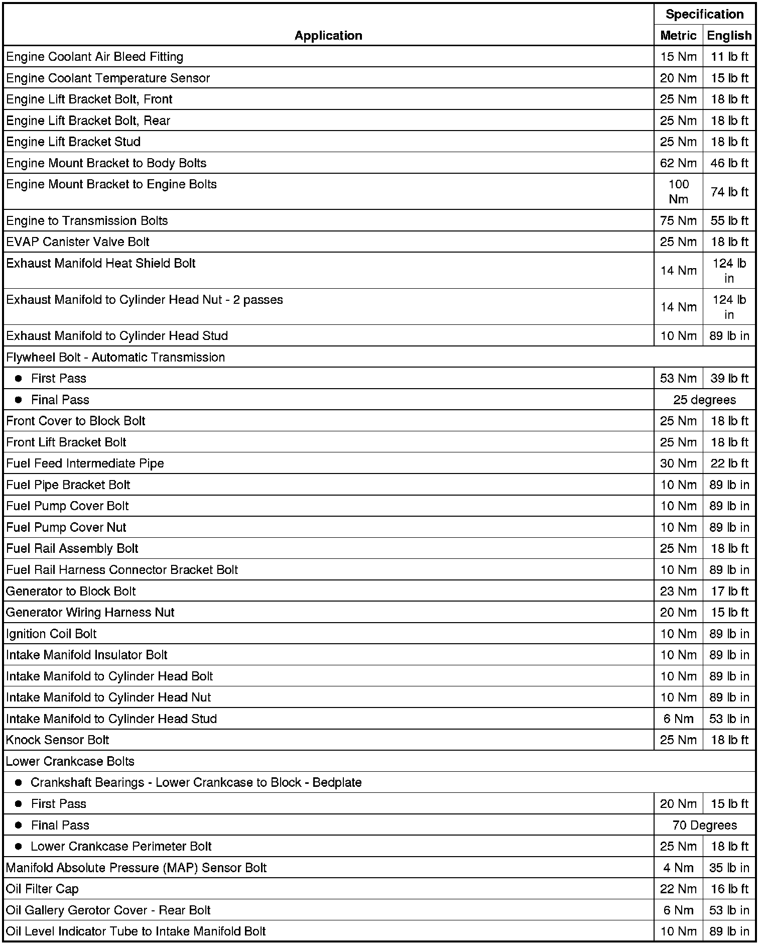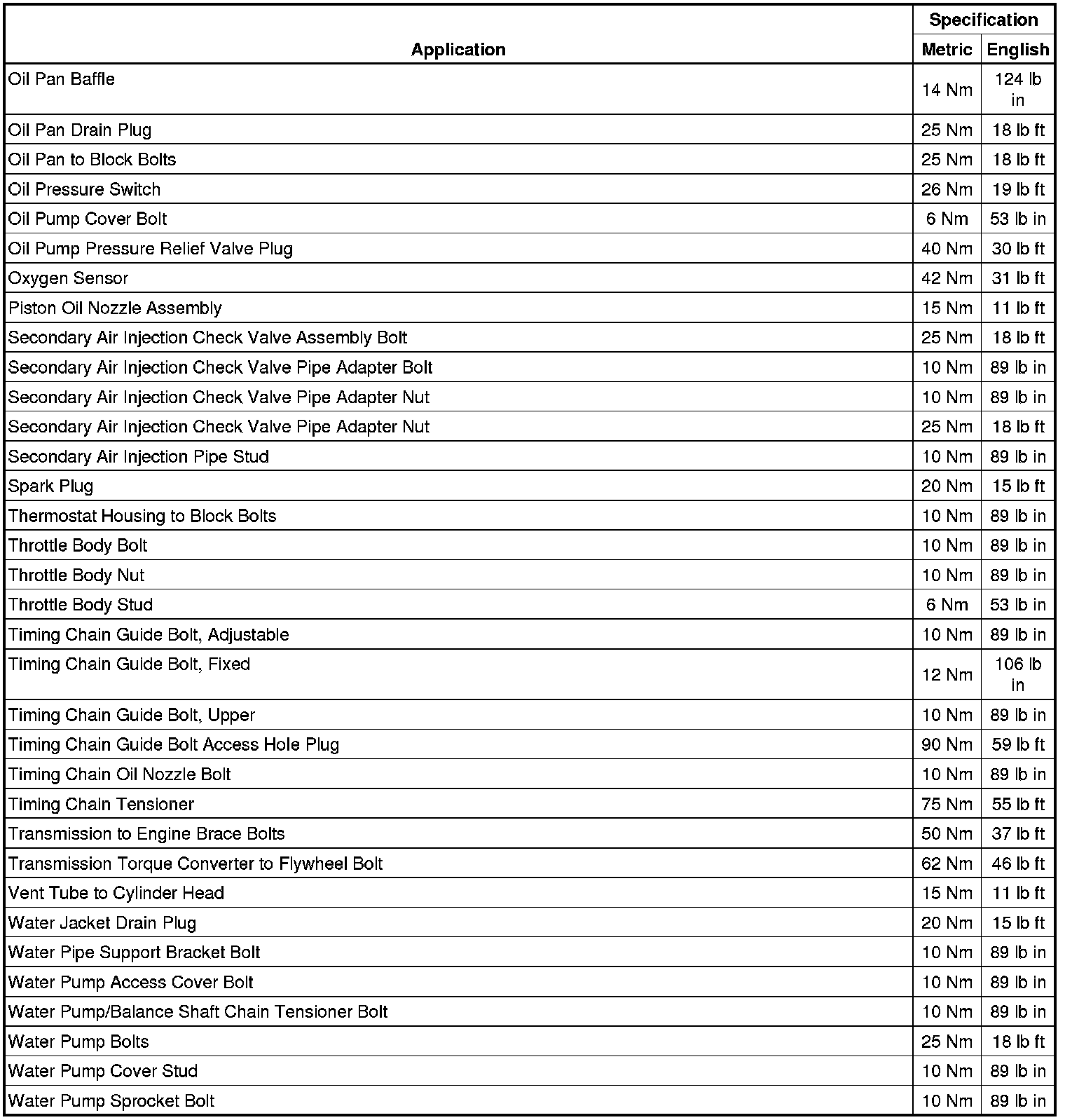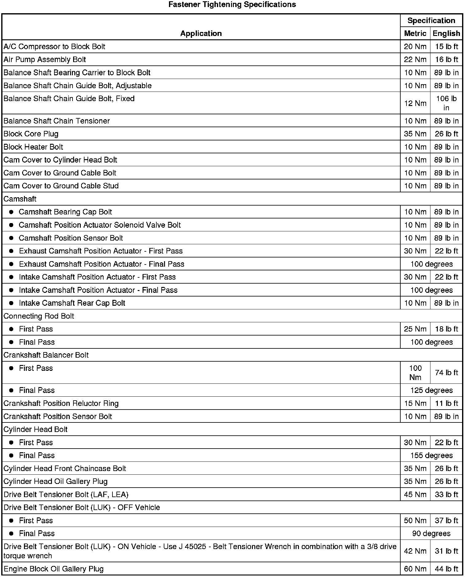 Fastener Tightening Specifications