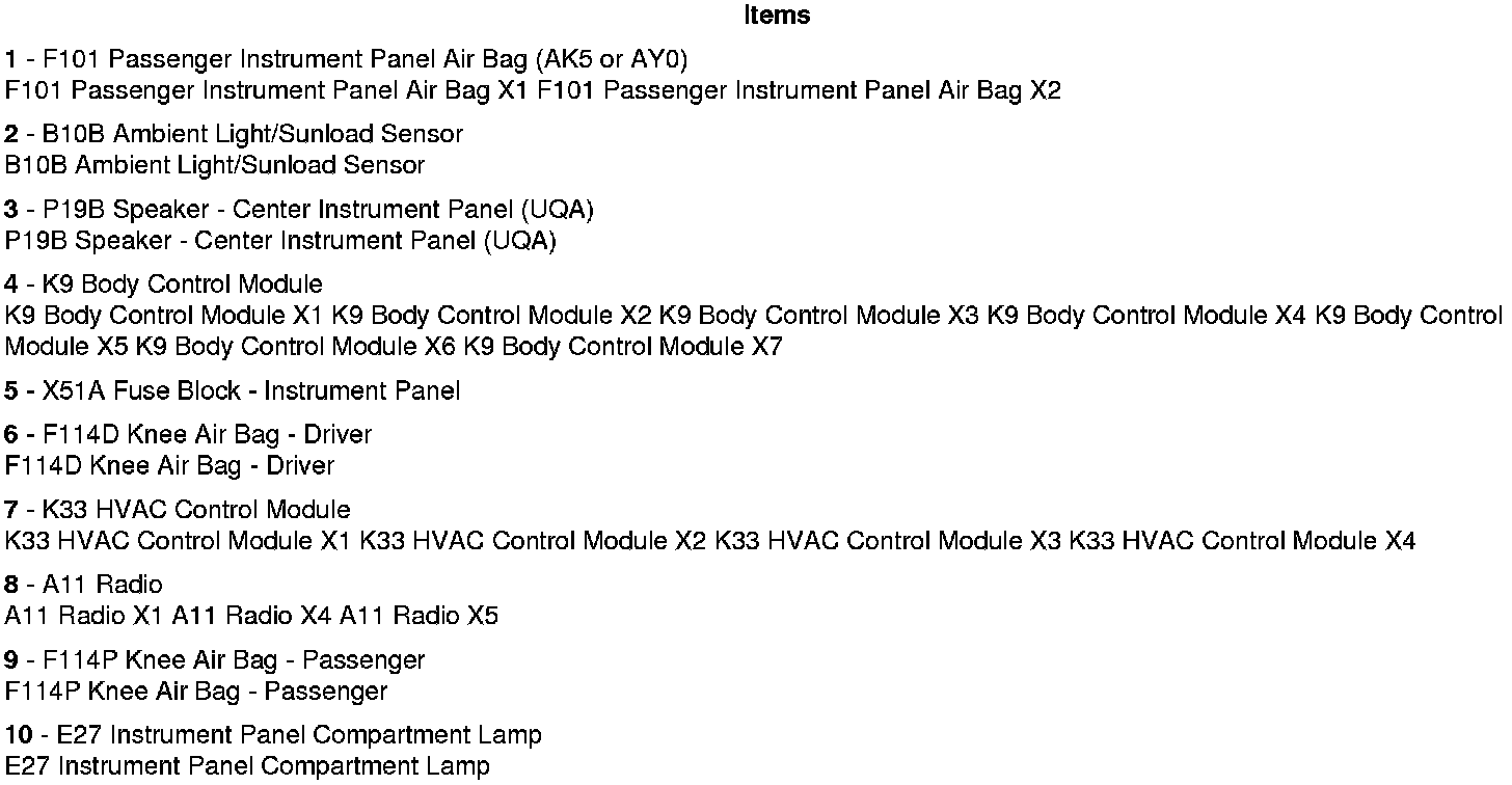 Instrument Panel/Center Console Component Views