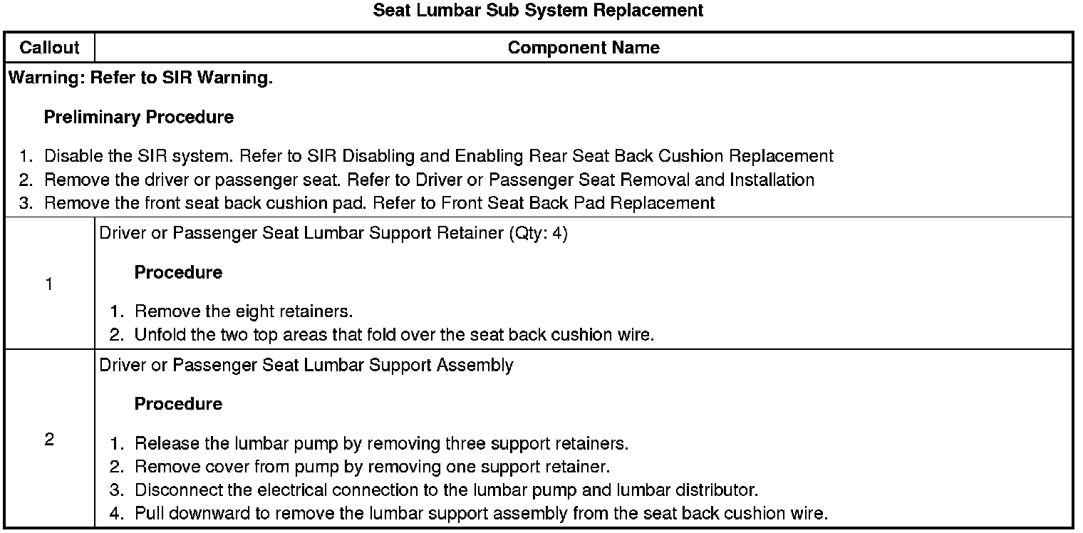 Seat Lumbar Sub System Replacement
