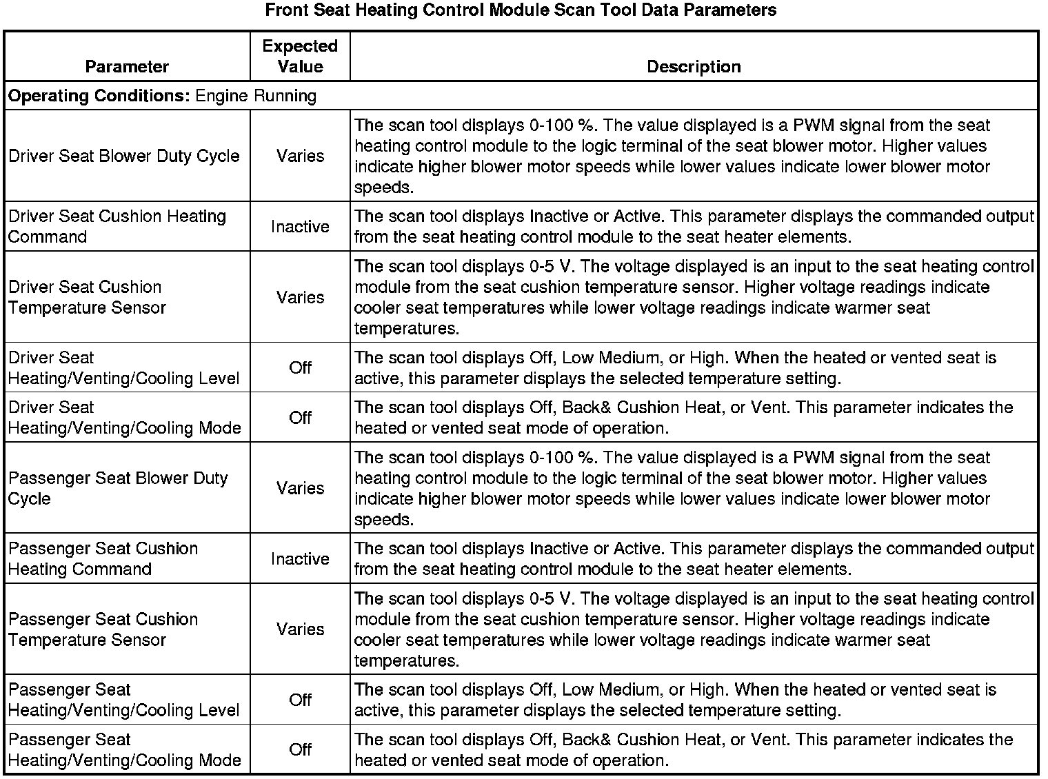 Driver Seat and Passenger Seat Heater Control Module Scan Tool Information