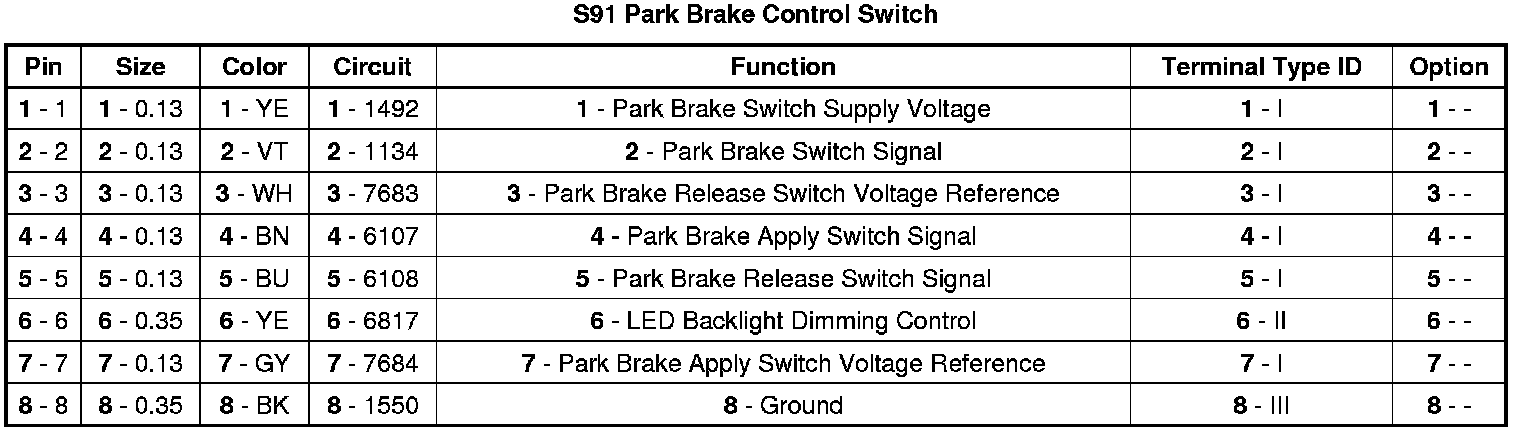 S91 Park Brake Control Switch