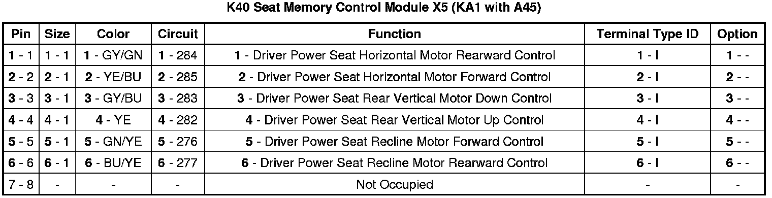 Seat Memory Control Module X5 (KA1 with A45)