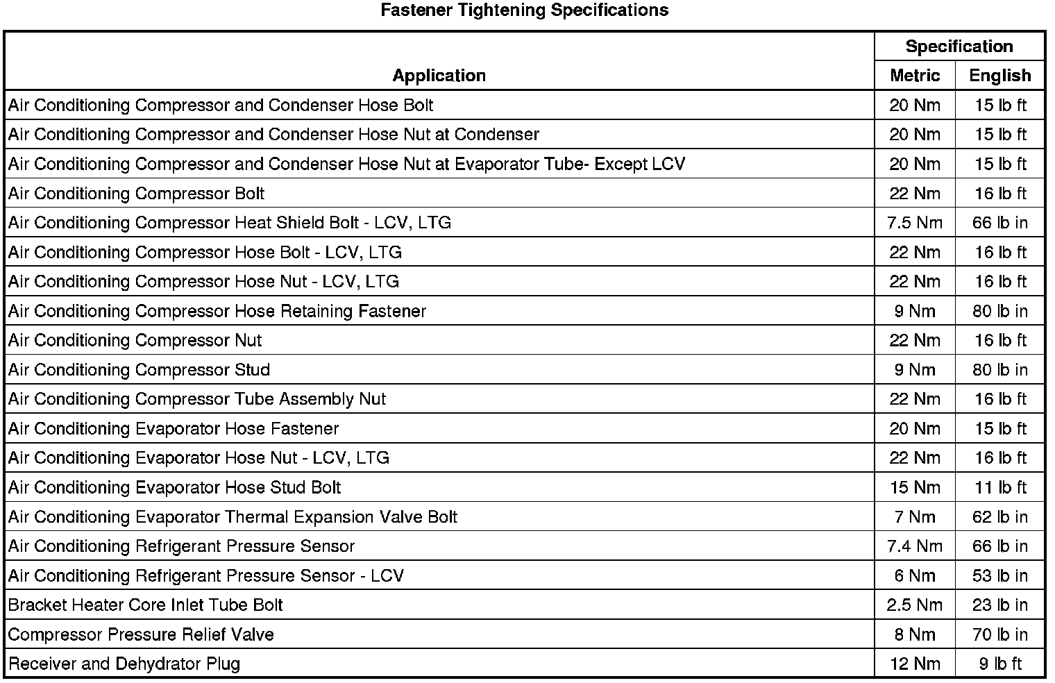 Fastener Tightening Specifications