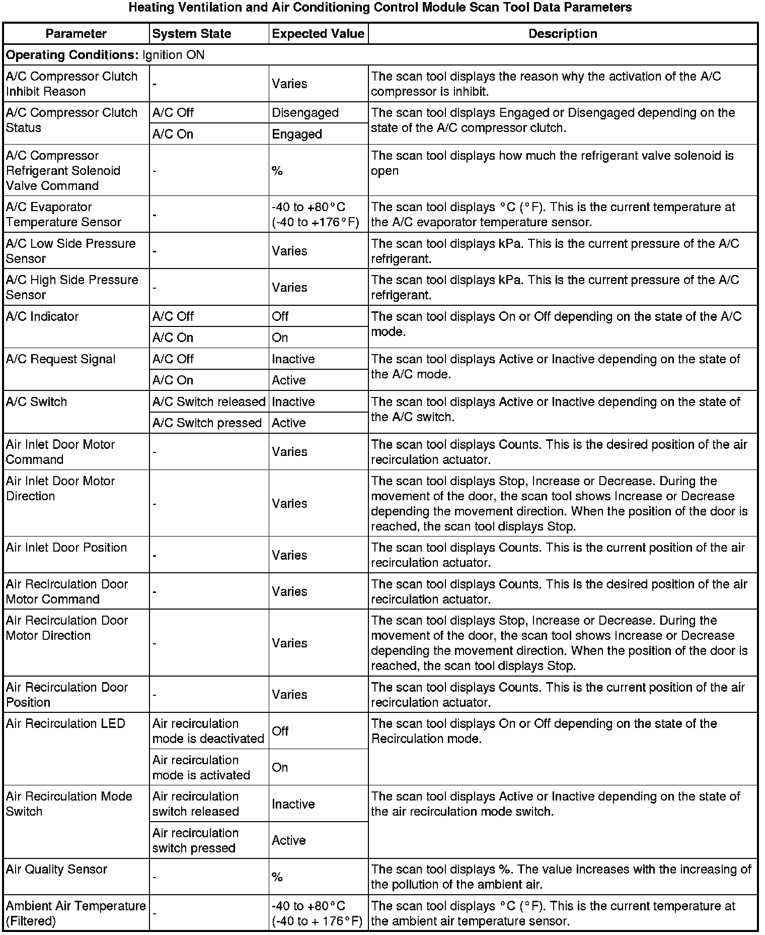 Heating, Ventilation and Air Conditioning Control Module Scan Tool Information