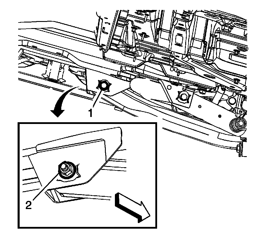 2. With the NEW rear lower control arm bolt (1) in place, rotate the rear lower control arm bolt (1) until the proper camber setting is achieved. Refer to Wheel Alignment Specifications Wheel Alignment Specifications.