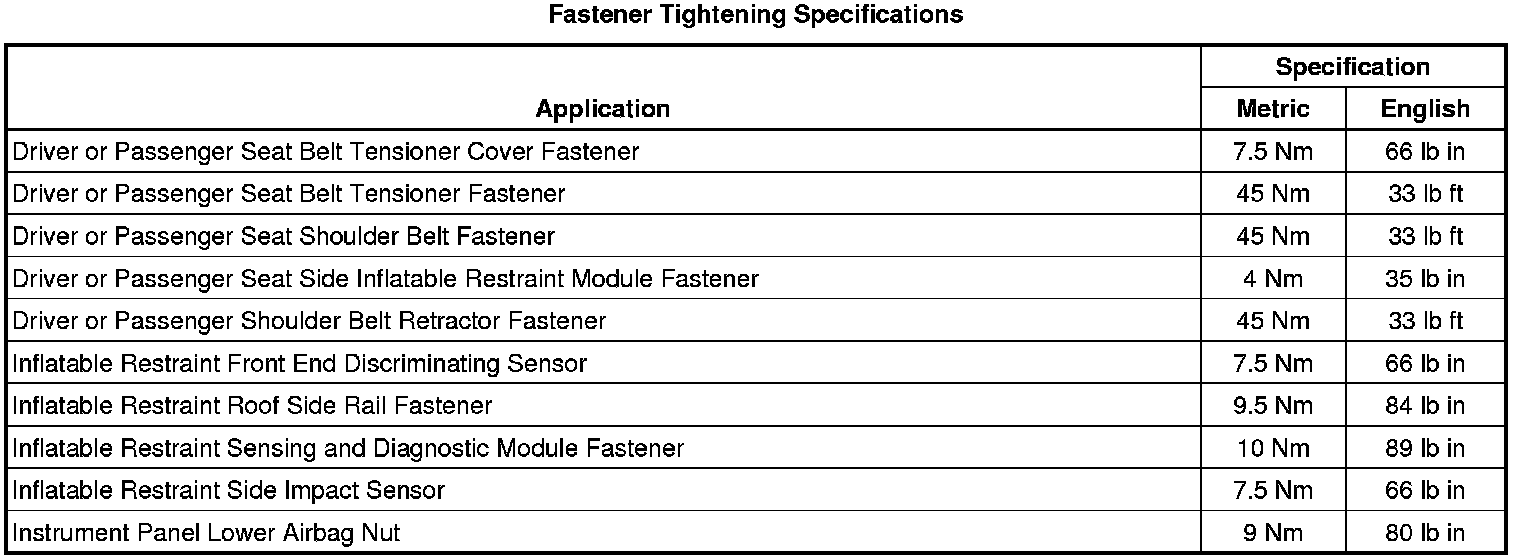 Fastener Tightening Specifications
