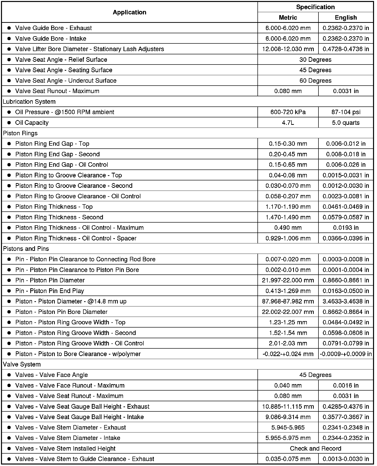 Engine Mechanical Specifications