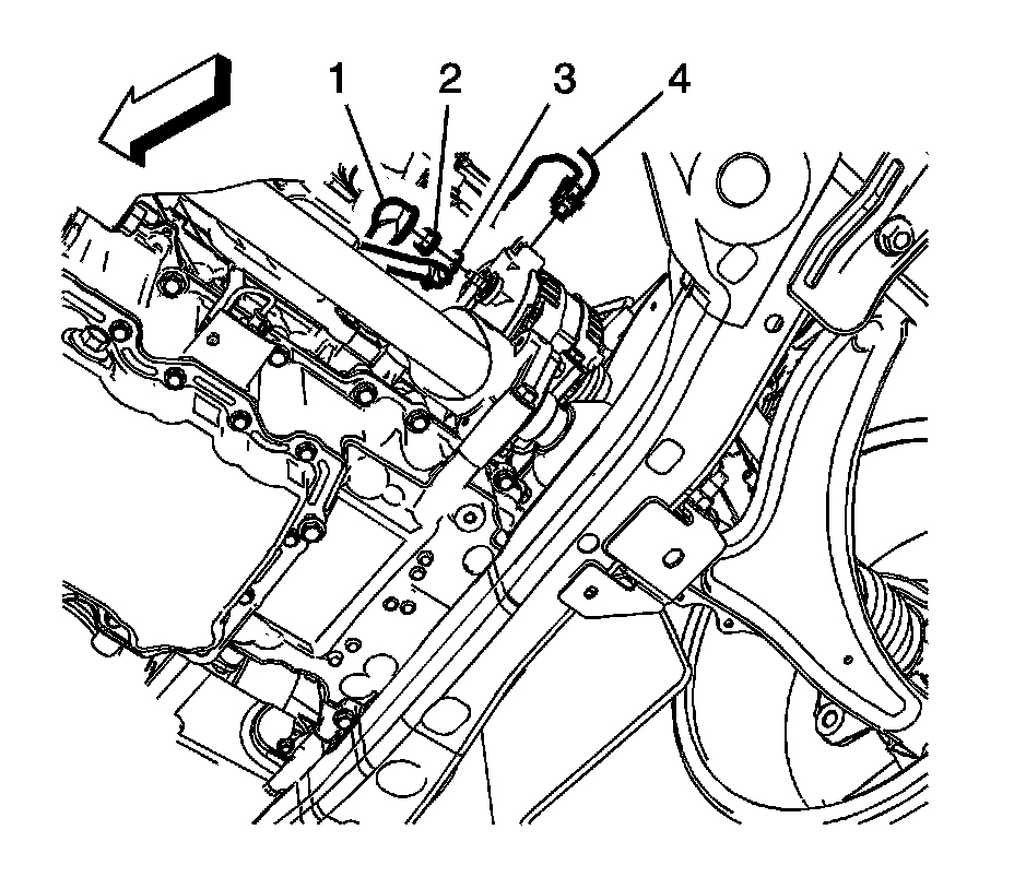 3. Remove the secondary air injection pump inlet hose (LCV Engine) , if equipped. Refer to Secondary Air Injection Pump Inlet Hose Replacement Secondary Air Injection Pump Inlet Hose Replacement.