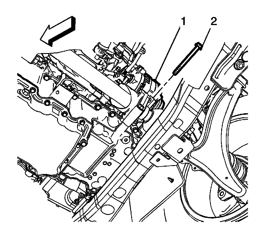 2. Install the generator lower mounting fastener (2) and tighten to 22 Nm (16 lb ft).
