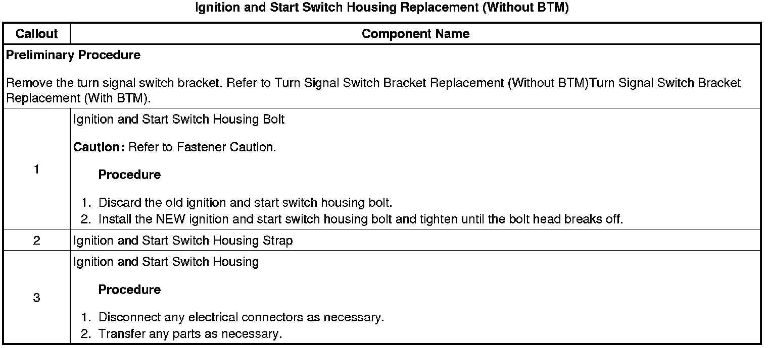 Ignition and Start Switch Housing Replacement (Without BTM)