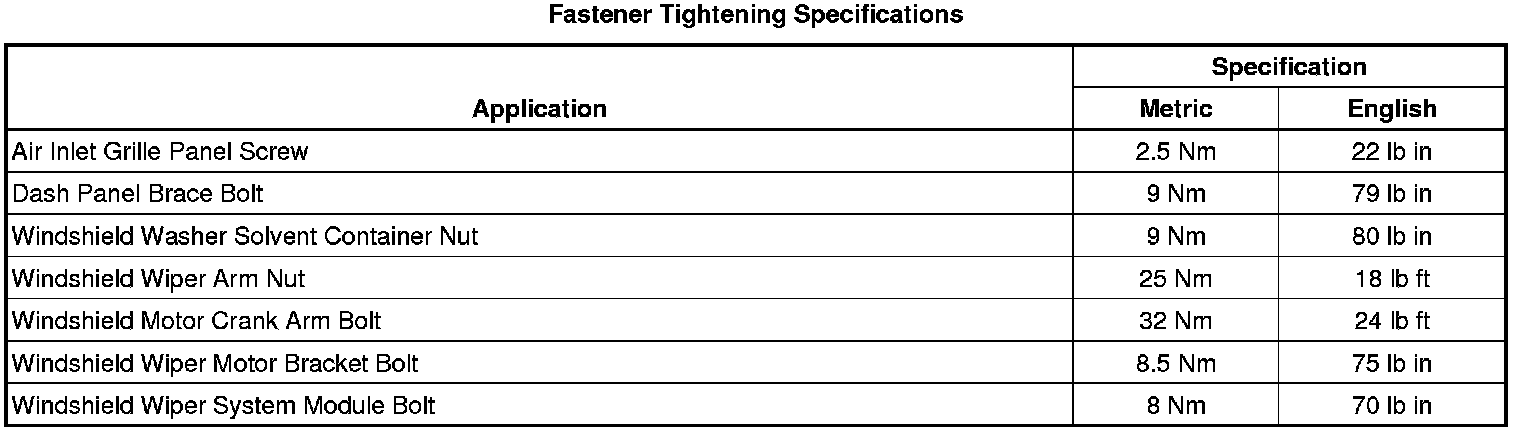 Wiper and Washer Systems: Specifications