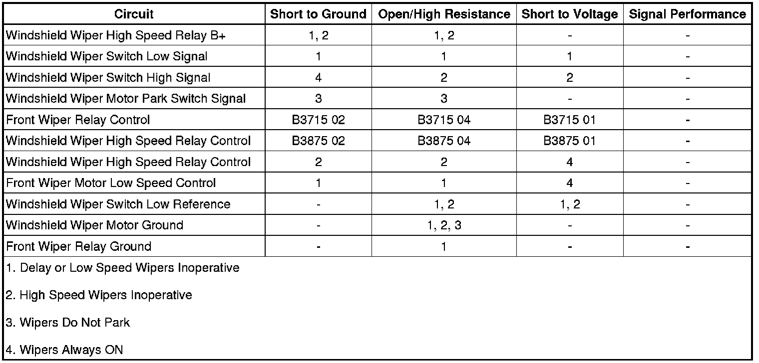 * A short to ground is detected in the Front Wiper Relay control circuit or in the High Speed Relay control circuit.