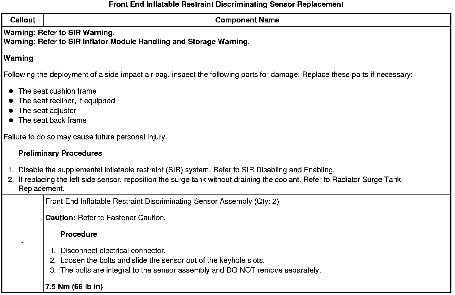 Front End Inflatable Restraint Discriminating Sensor Replacement