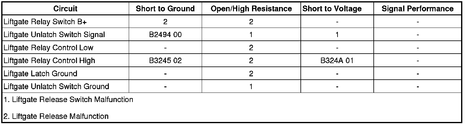 Refer to Circuit/System Testing - Liftgate Release Actuator Inoperative