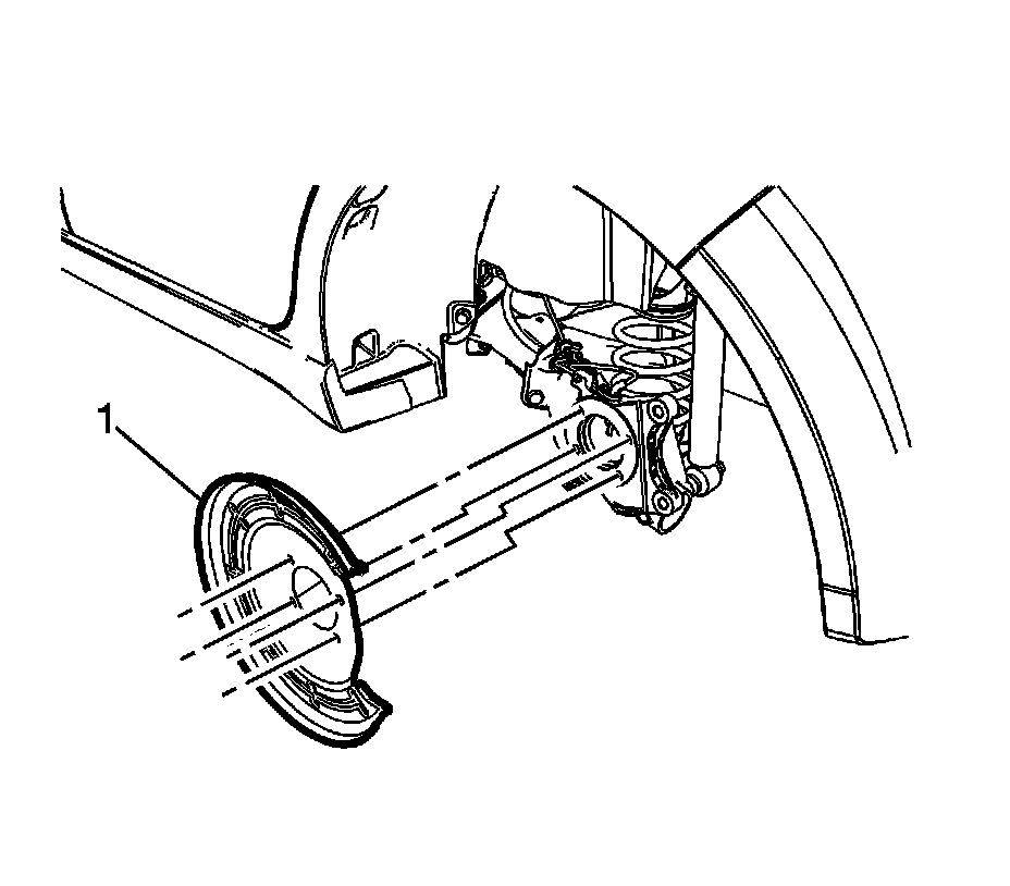 4. Remove the rear wheel bearing and hub assembly (1). Refer to Rear Wheel Bearing and Hub Replacement Rear Suspension.