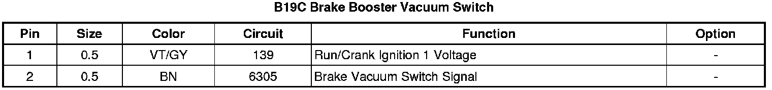 B19C Brake Booster Vacuum Switch