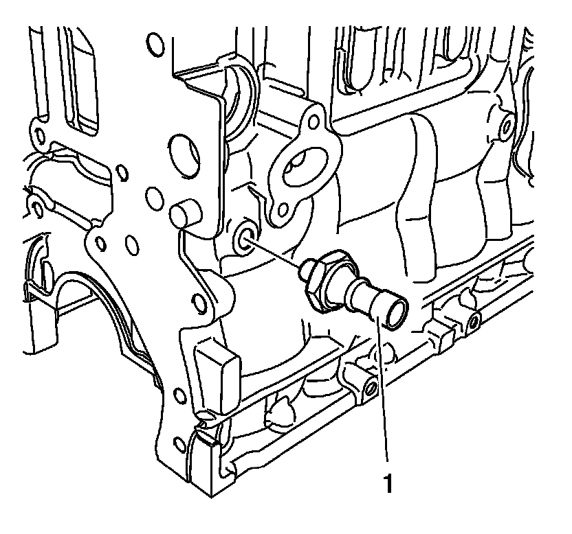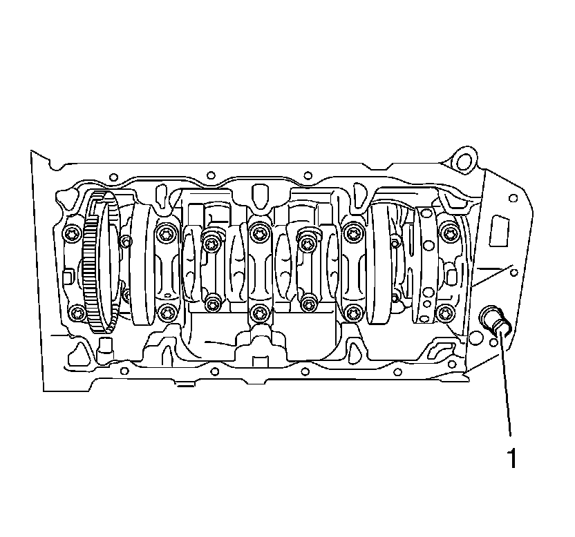 3. Install the oil pressure relief valve and the oil pressure relief valve closure bolt (1) and tighten to 21 Nm (16 lb ft).