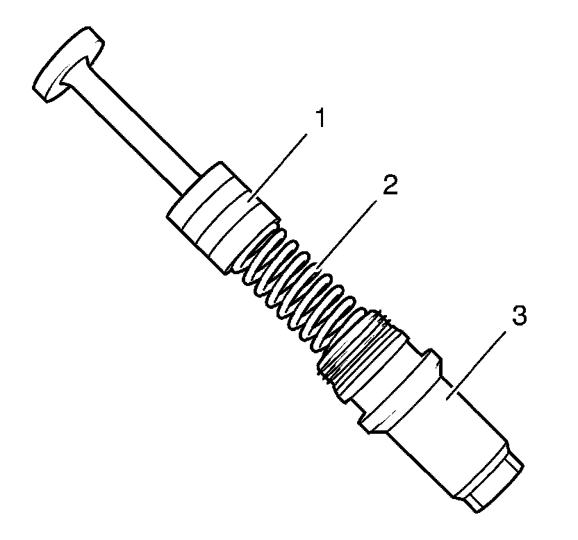 2. Install the piston (1) and spring (2) to the oil pressure relief valve closure bolt (3).