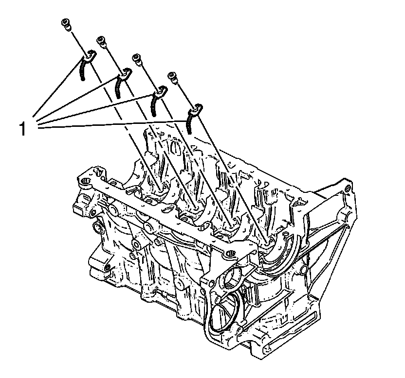 1. Install the 4 piston oil nozzles (1).