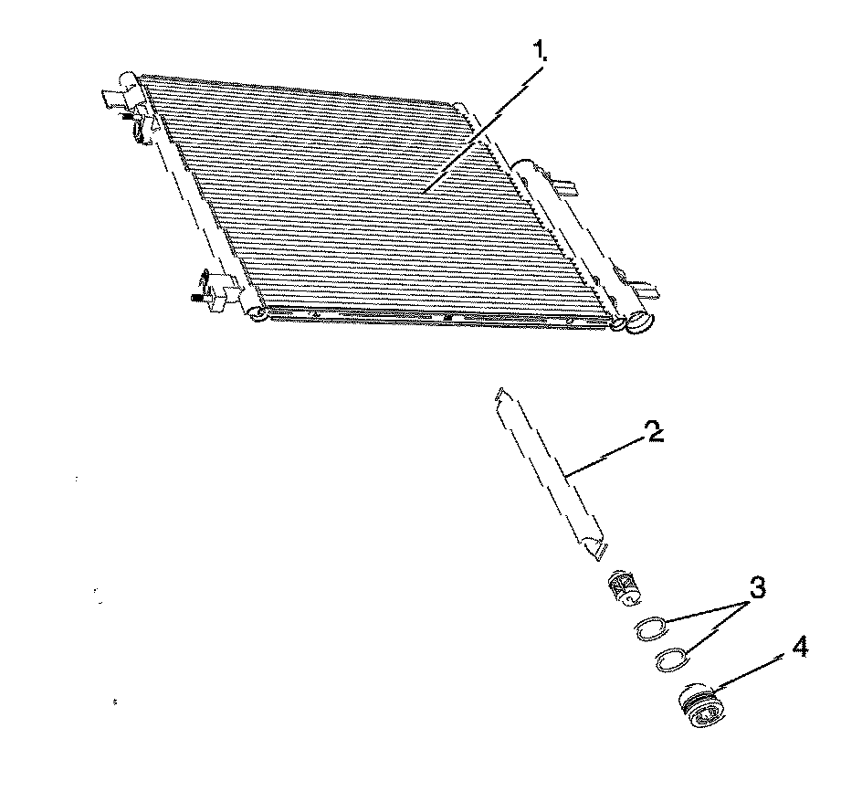 3. Remove the air conditioning receiver and dehydrator plug (4).