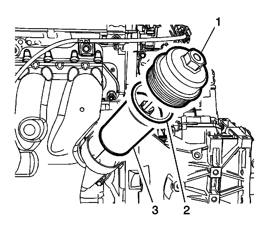3. Remove the oil filter cap seal (2)