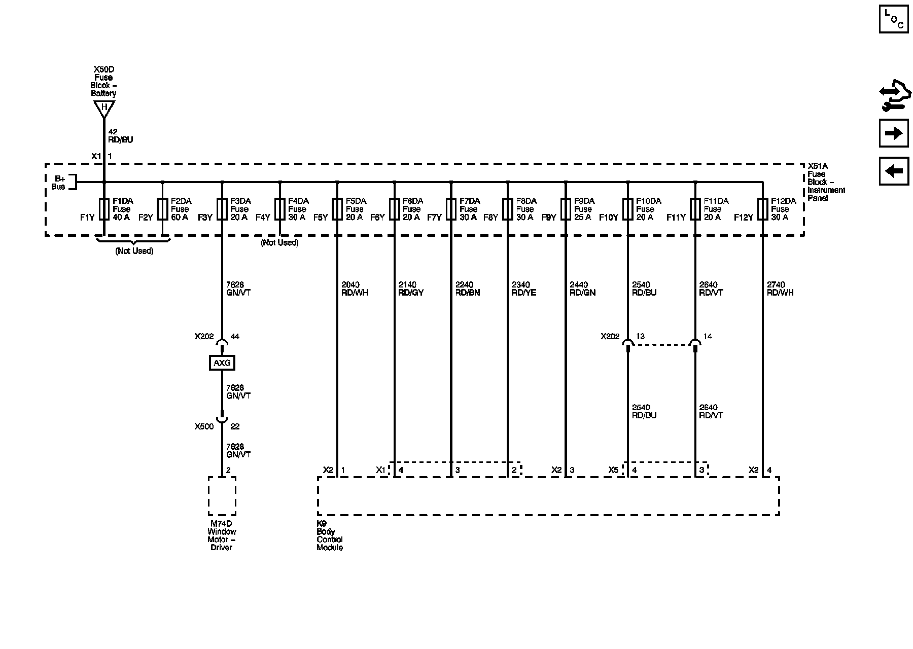 F1DA, F2DA, F3DA, F4DA, F5DA, F6DA, F7DA, F8DA, F9DA, F10DA, F11DA, and F12DA Fuses