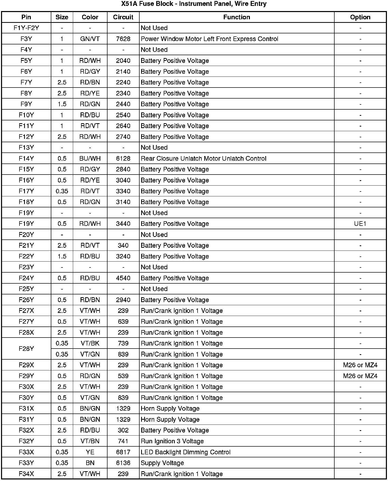 X51A Fuse Block - Instrument Panel, Wire Entry