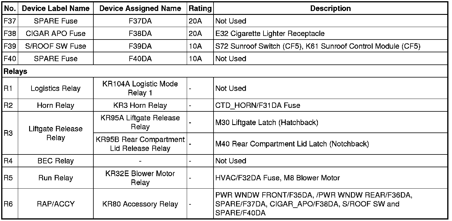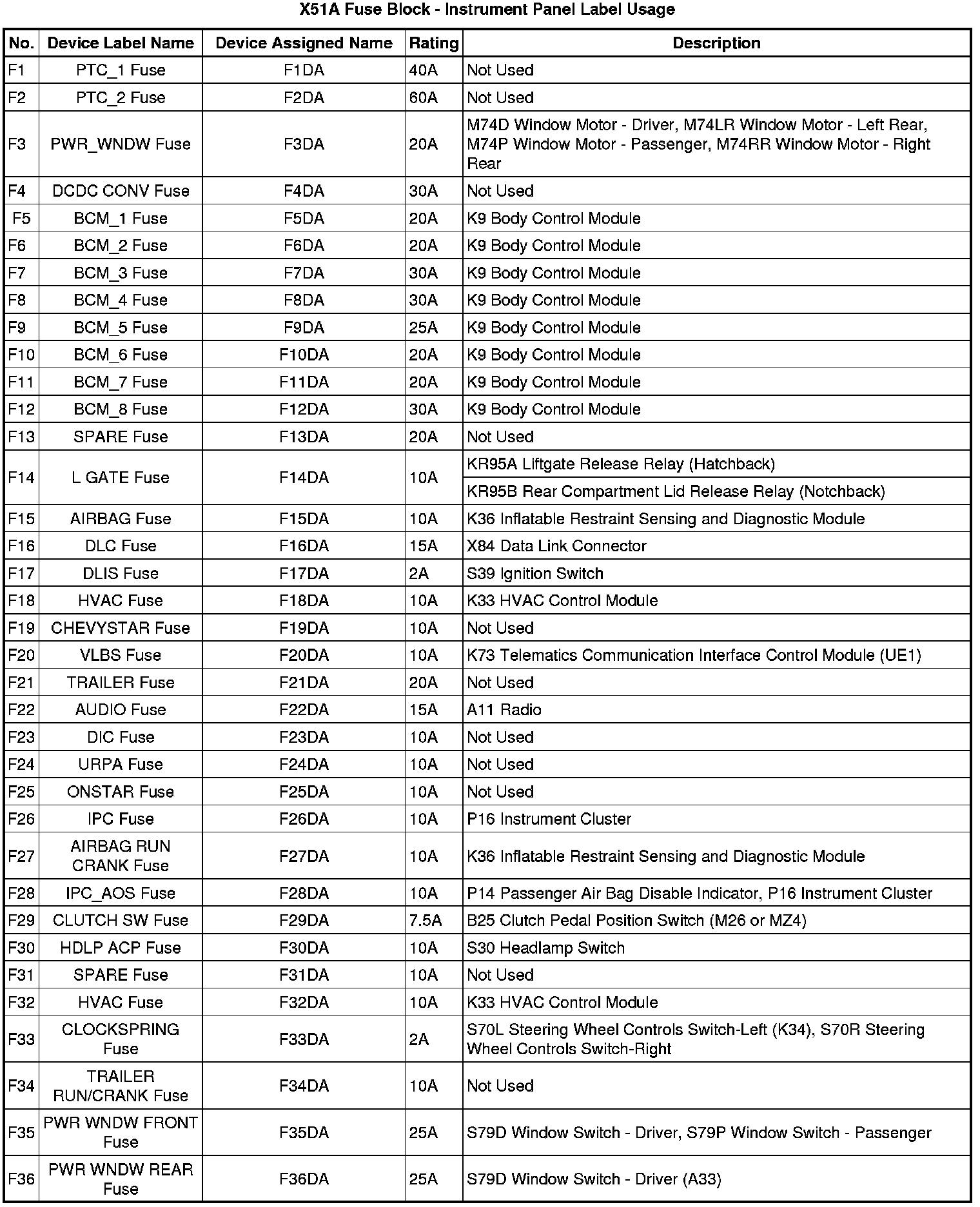 X51A Fuse Block - Instrument Panel Label