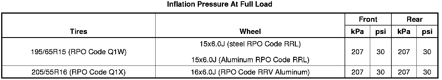 Tire and Wheel Specifications